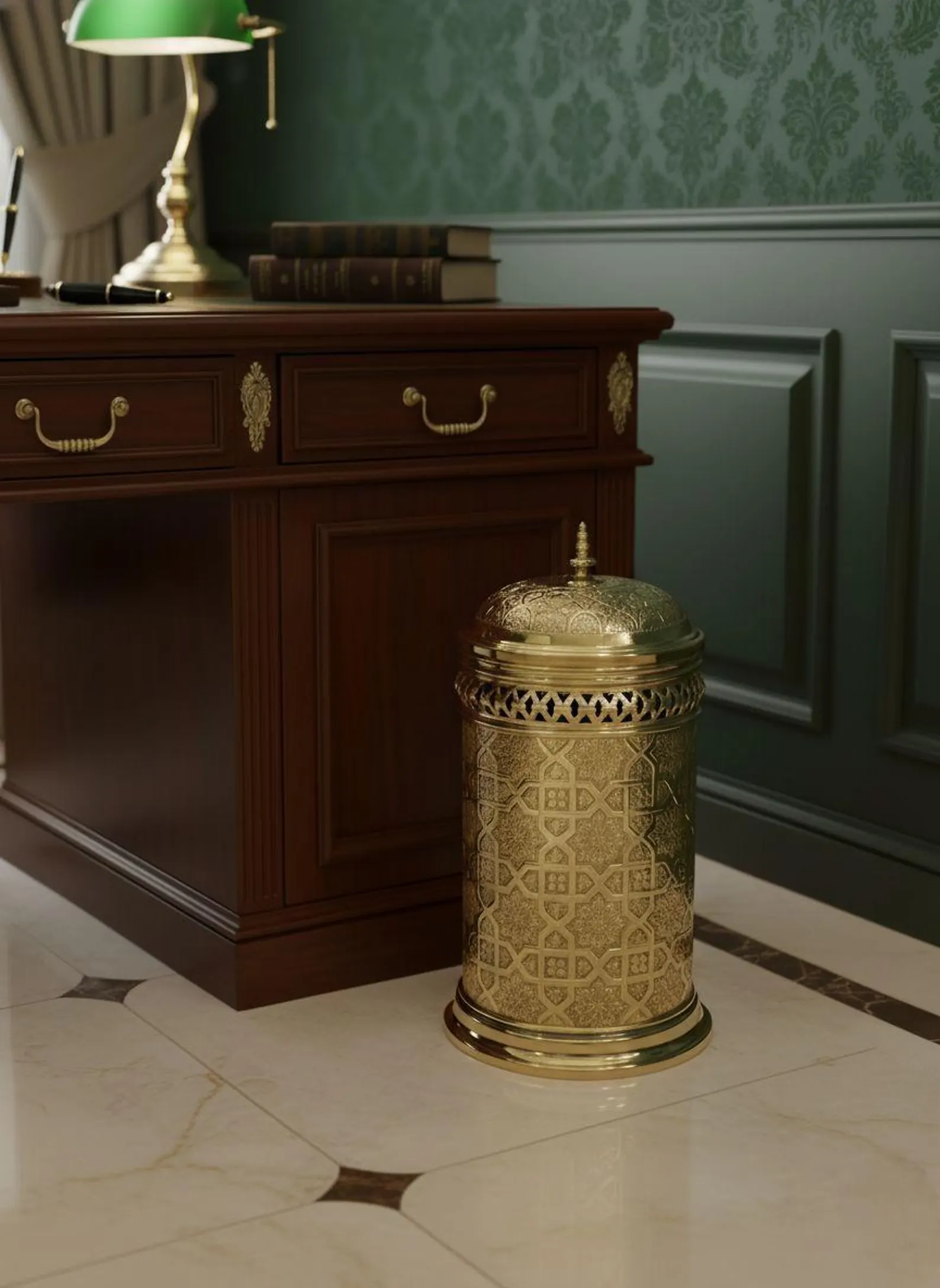 Couvercle de poubelle en laiton gravé