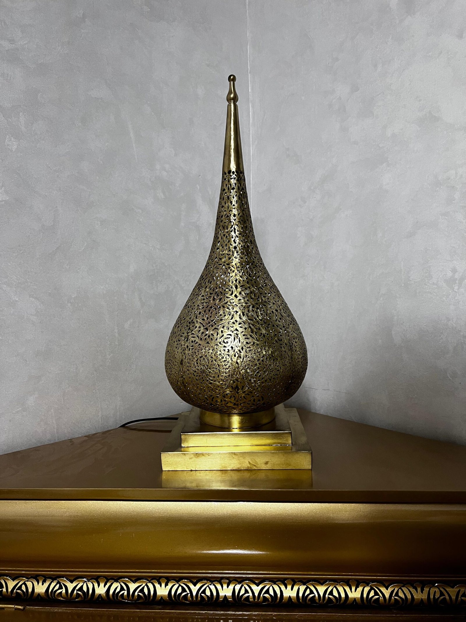 Lampe de chevet en laiton, fabrication artisanale – Luminaire de style marocain moderne.