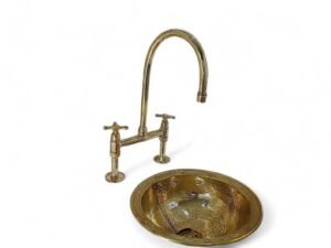 Faites l’expérience du luxe avec cet exquis ensemble de robinetterie en laiton, parfait pour les salles de bains artisanales et de style vintage. Cet ensemble magnifiquement coordonné comprend un lavabo en laiton martelé à la main et un robinet pont monté sur le pont, élevant instantanément n’importe quel meuble-lavabo en une superbe pièce maîtresse d’élégance rustique. Idéal pour les propriétaires et les designers à la recherche d’un accessoire de salle de bain unique et fabriqué à la main.