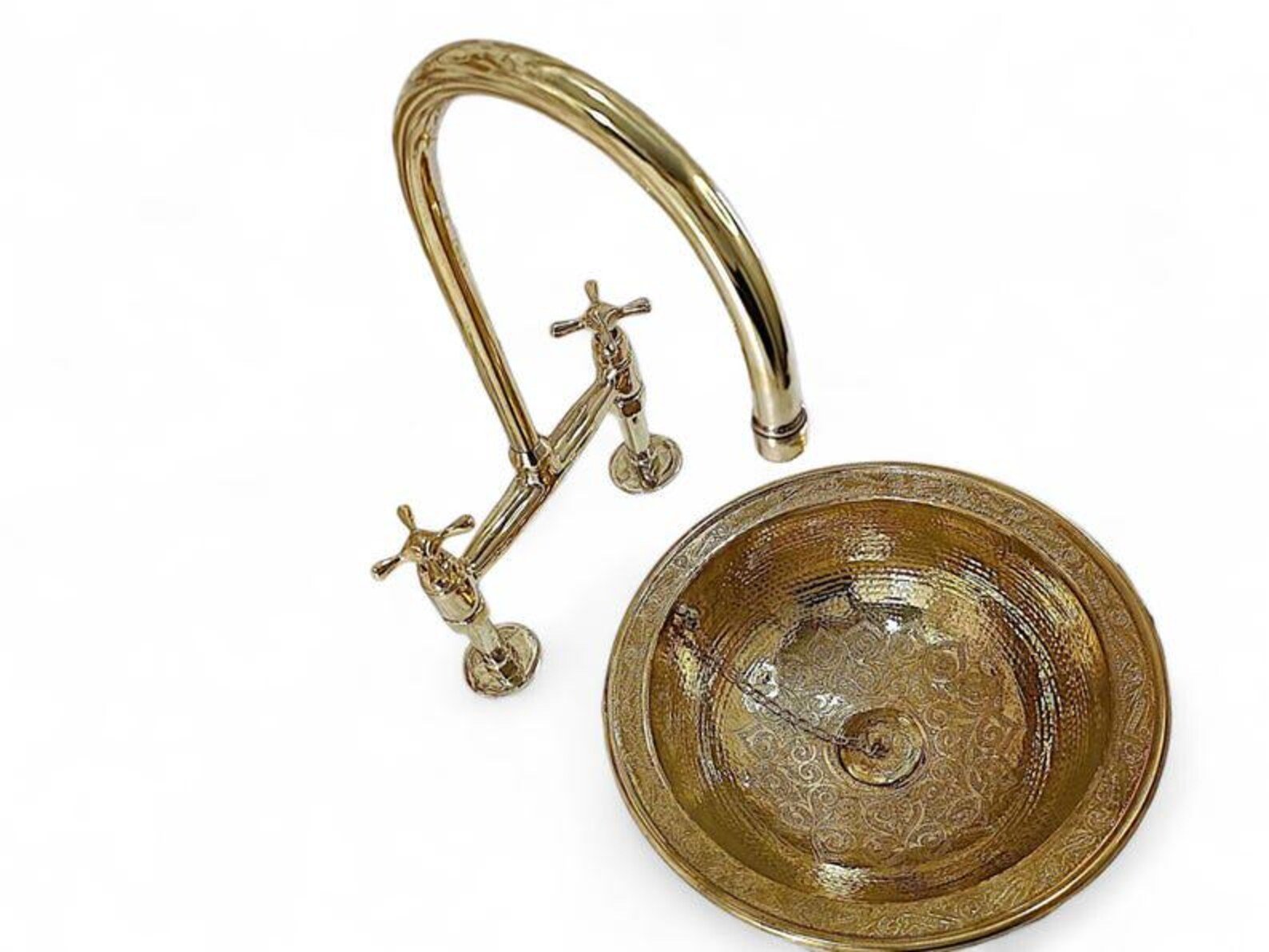 Faites l’expérience du luxe avec cet exquis ensemble de robinetterie en laiton, parfait pour les salles de bains artisanales et de style vintage. Cet ensemble magnifiquement coordonné comprend un lavabo en laiton martelé à la main et un robinet pont monté sur le pont, élevant instantanément n’importe quel meuble-lavabo en une superbe pièce maîtresse d’élégance rustique. Idéal pour les propriétaires et les designers à la recherche d’un accessoire de salle de bain unique et fabriqué à la main.