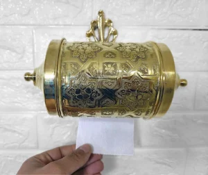 Finition dorée, ce porte-papier hygiénique pourrait décorer la maison de style vintage et luxueux.