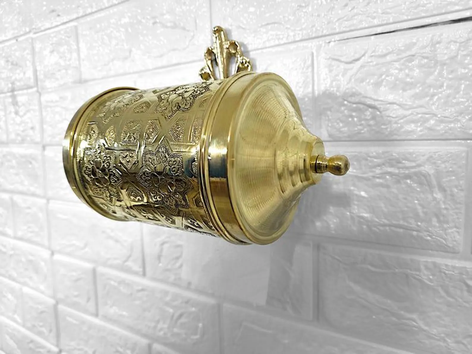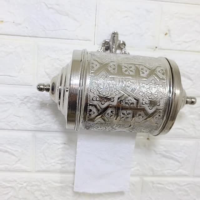Finition dorée, ce porte-papier hygiénique pourrait décorer la maison de style vintage et luxueux.