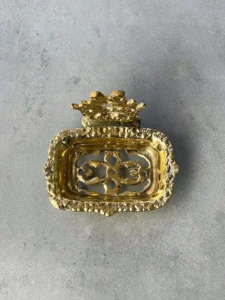 Parfait pour la salle de bain, le cabinet de toilette ou comme cadeau de pendaison de crémaillère, ce porte-savon en laiton d’inspiration vintage allie fonctionnalité et charme artisanal. Ses détails complexes et sa conception à base ouverte gardent votre savon au sec et plus durable.