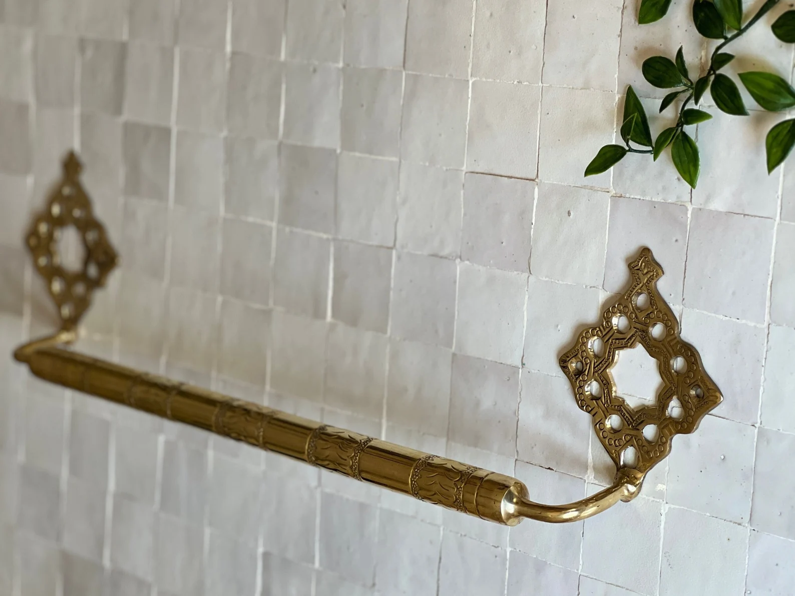 Porte-serviette mural, porte-serviettes en laiton antique, porte-serviettes de salle de bain, porte-serviettes marocain fait main, porte-serviettes en laiton non laqué