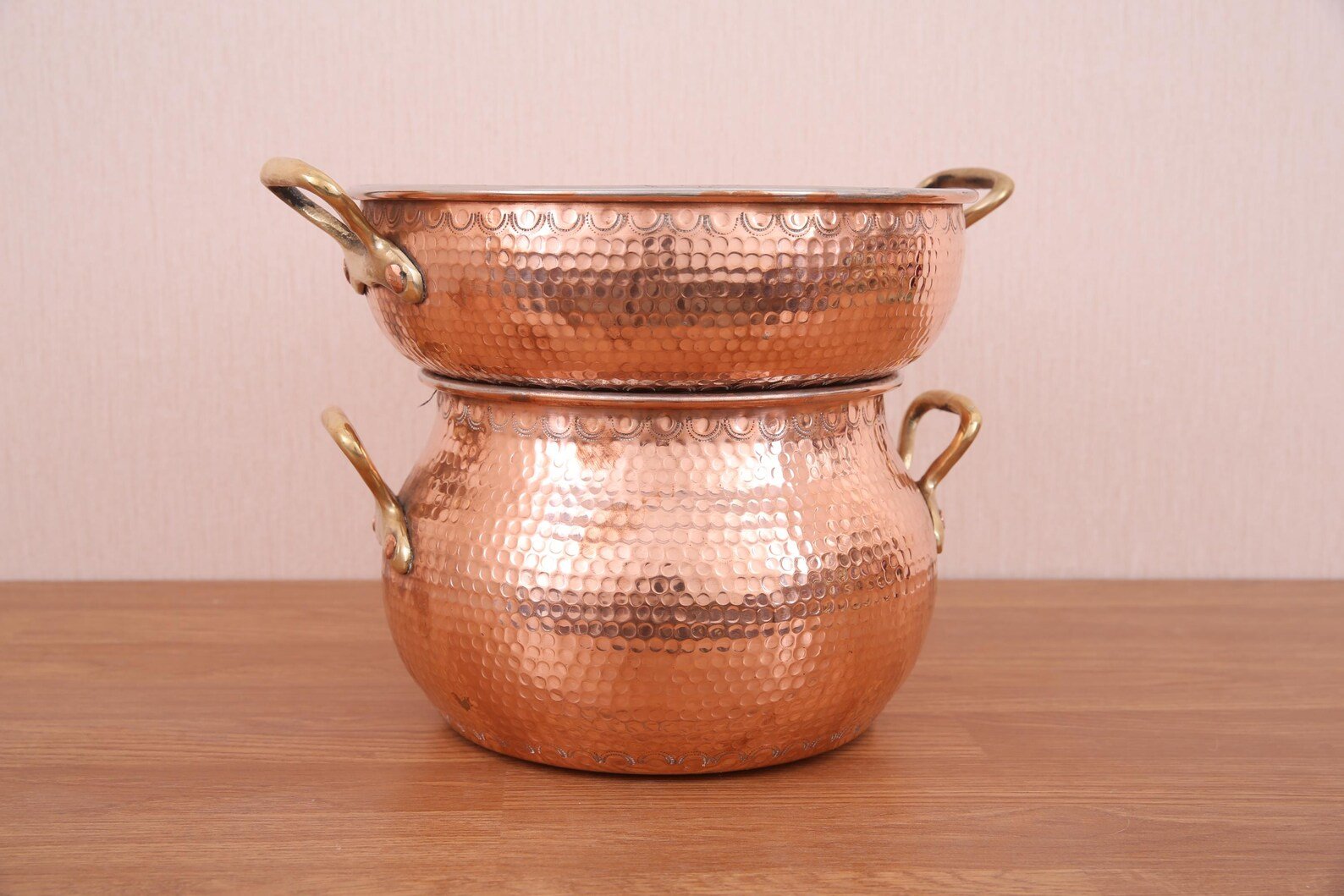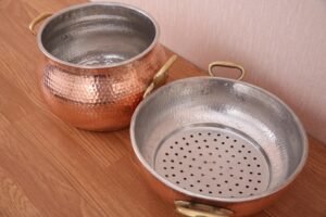 Conception à deux niveaux : casserole du bas pour faire mijoter le bouillon, casserole du haut perforée pour cuire le couscous à la vapeur